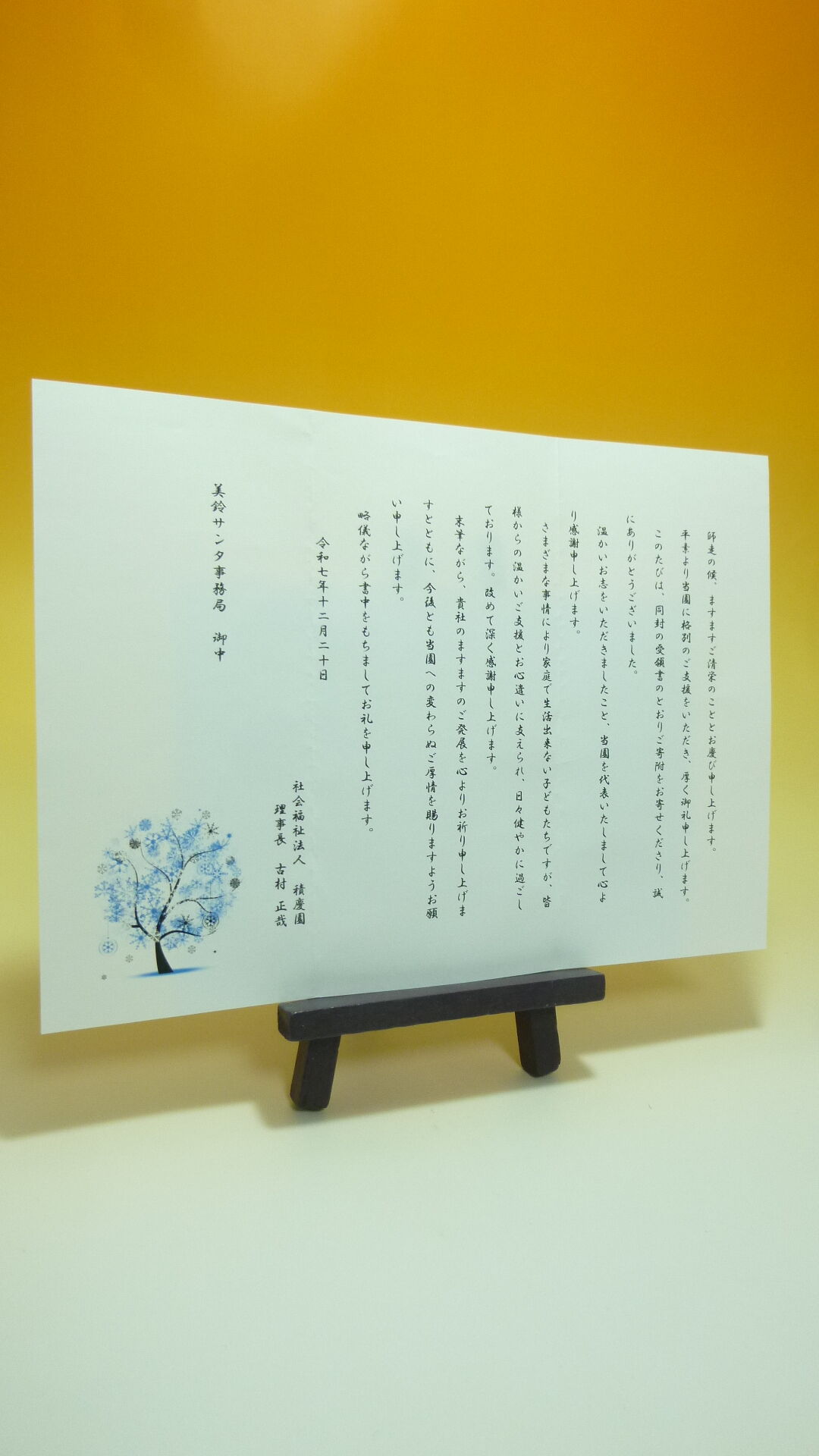積慶園様から、美鈴サンタ2025’の感謝状が届きました。