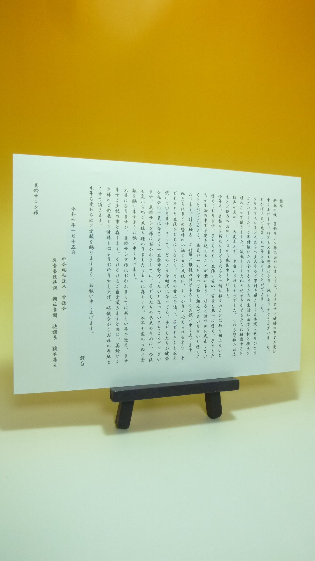 興正学園様から、美鈴サンタ2025’の感謝状が届きました。